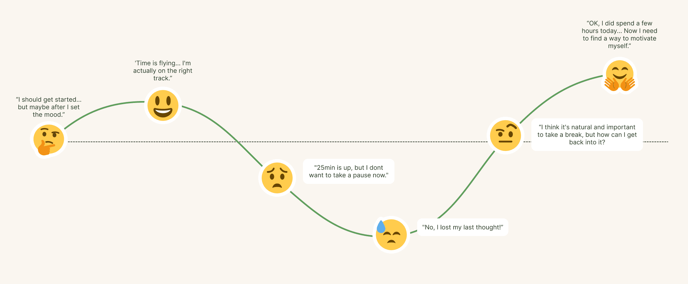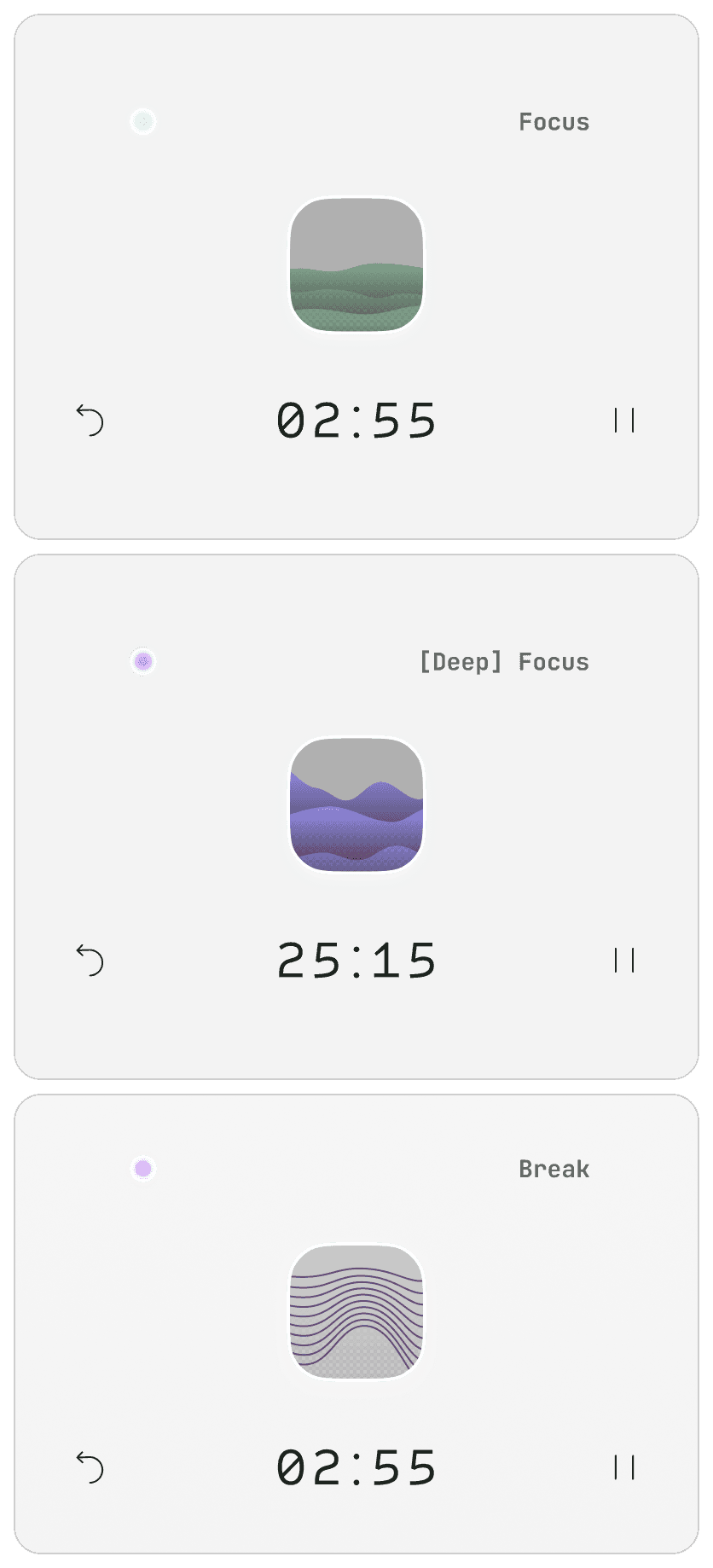 Instead of enforcing fixed work intervals, the goal was to create a timer that adapts to natural focus rhythms, supporting awareness without pressure.