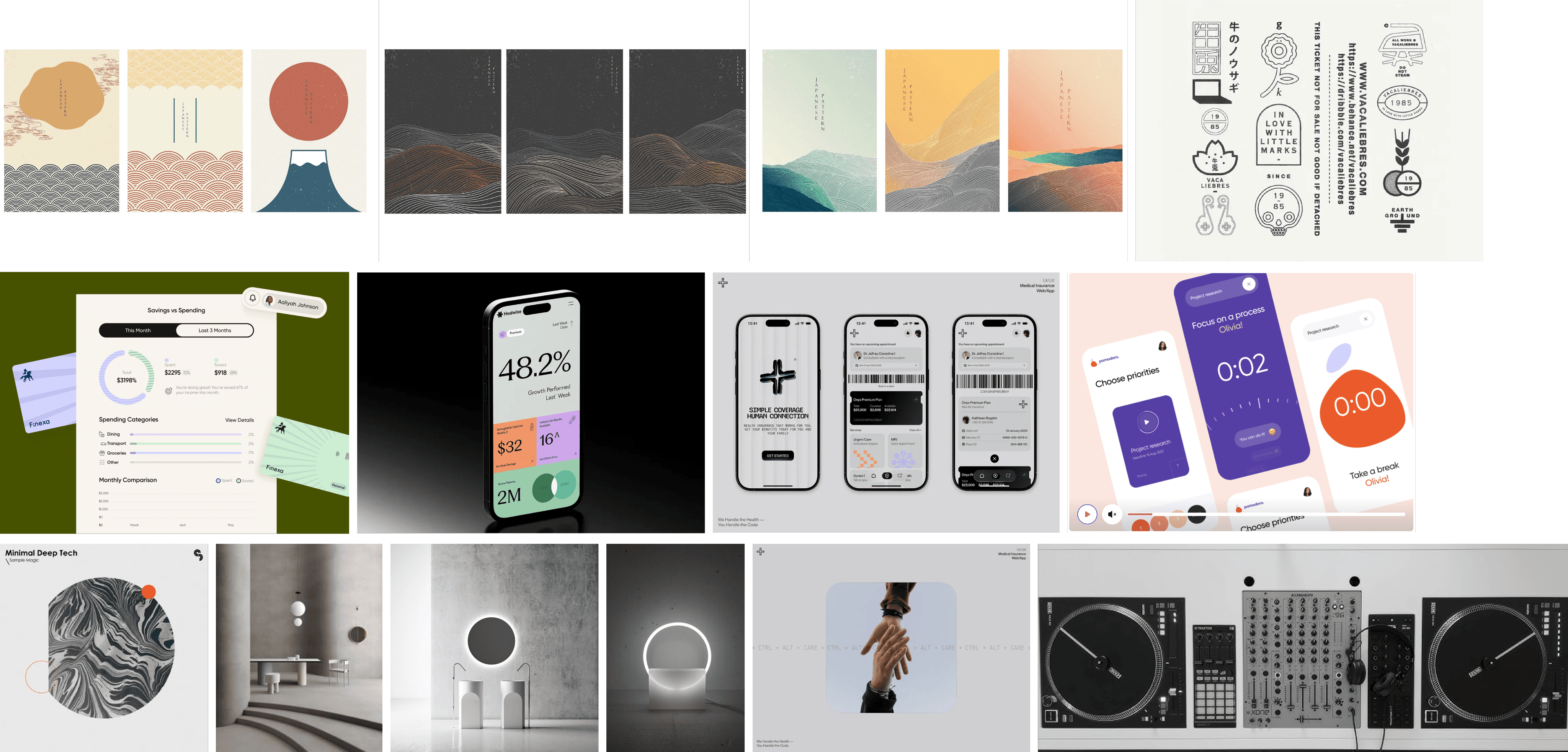 I created a moodboard emphasizing neutral color palettes, soft gradients, and minimal contrast shifts to evoke calm focus.