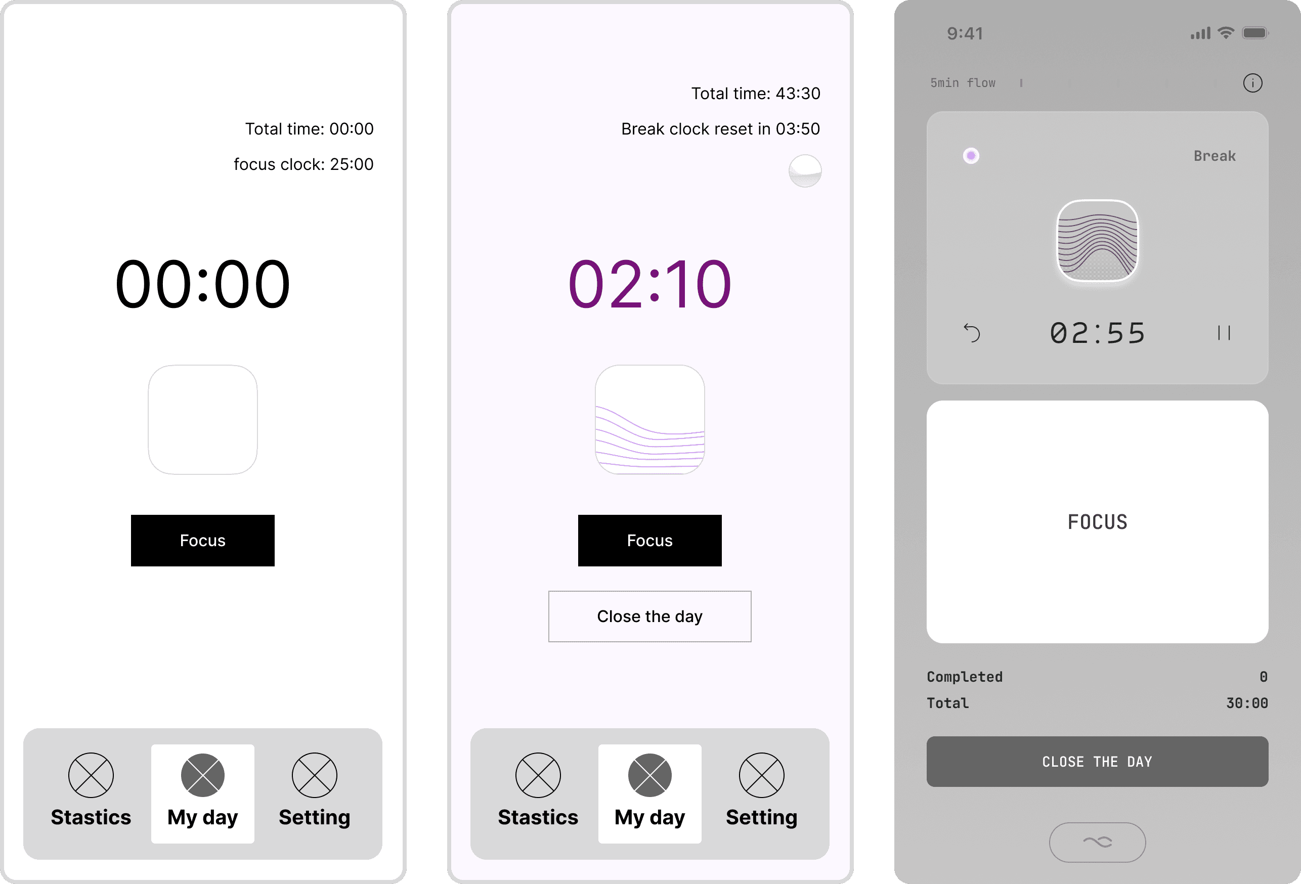 With the problem defined, I began exploring how a timer could work with human rhythm rather than against it. I focused on simplicity — one or few clicks that make the experiences intuitive and adaptive. I wanted to design something that feels less like a tool and more like a companion.